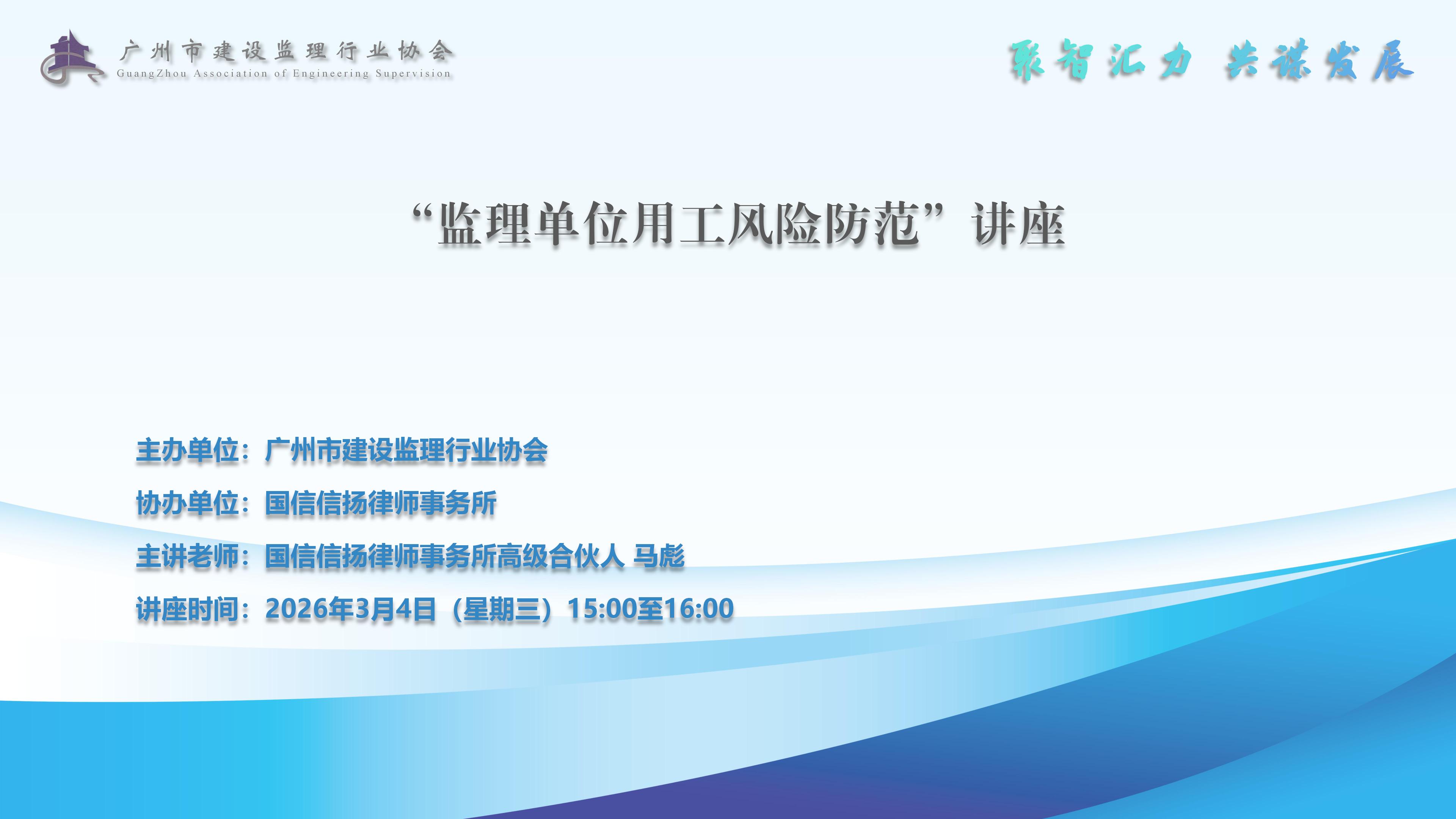 - 广州市建设监理行业协会关于举办“监理单位用工风险防范”讲座的通知2026-03-02