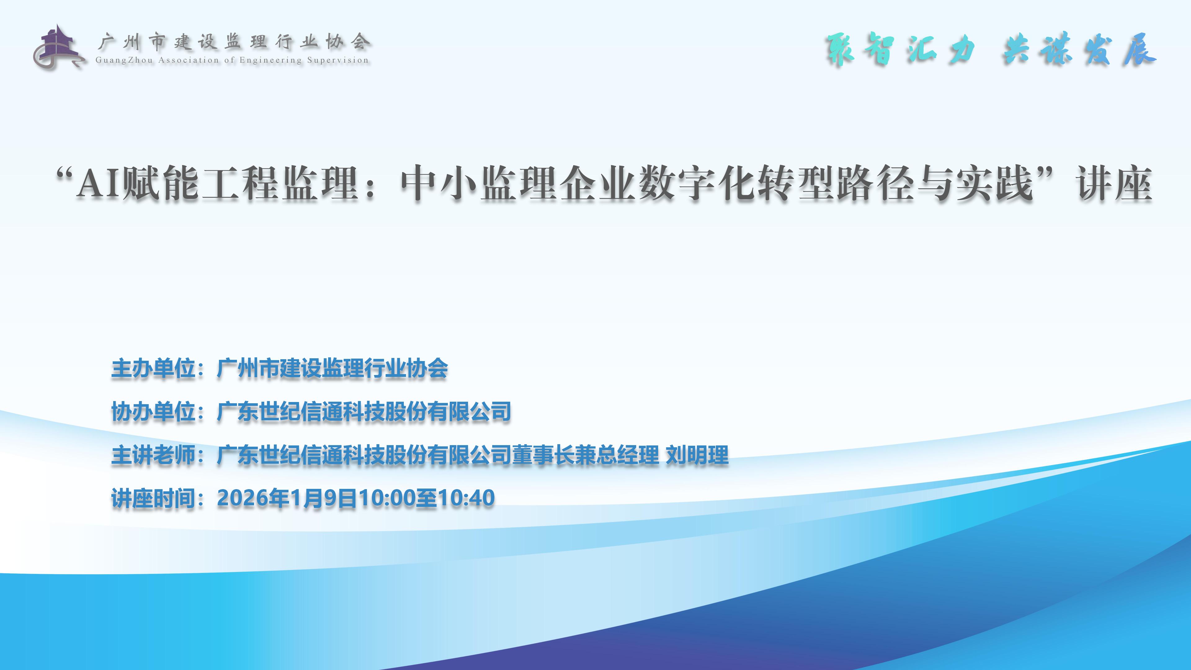 - 广州市建设监理行业协会关于举办“AI赋能工程监理:中小监理企业数字化转型路径 与实践”讲座的通知2026-01-07